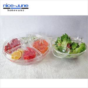 KEEP your vegetable crisp and cold throughout a party. No worries about your cold appetizers and fruit while you entertain! Bottom tray of this 4pc appetizer server holds a layer of ice to keep items cool, fresh and dry for hours. Top compartments can hold vegetables, dips, salsa, fruit, and other cold appetizers. Clean design fits in any decor. Clear plastic material is shatterproof. Perfect for indoor and outdoor parties. Great to have at a BBQ! 4 trays can also be separately used for a variety of party foods including chips, popcorn, assorted cheeses, etc. Easy to clean. Use mild soap and water. Avoid use of abrasive scrubbing pads that may cause scratches.